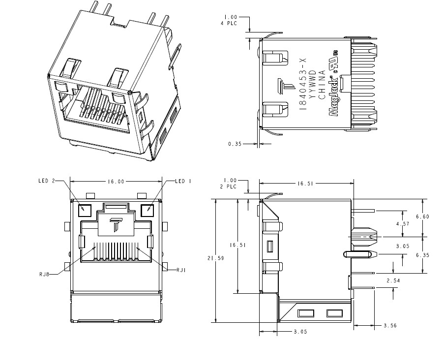 Product name : DR-MAG-1840453 1*1 Single Vertical Modular Jack RJ-45 Female Connector